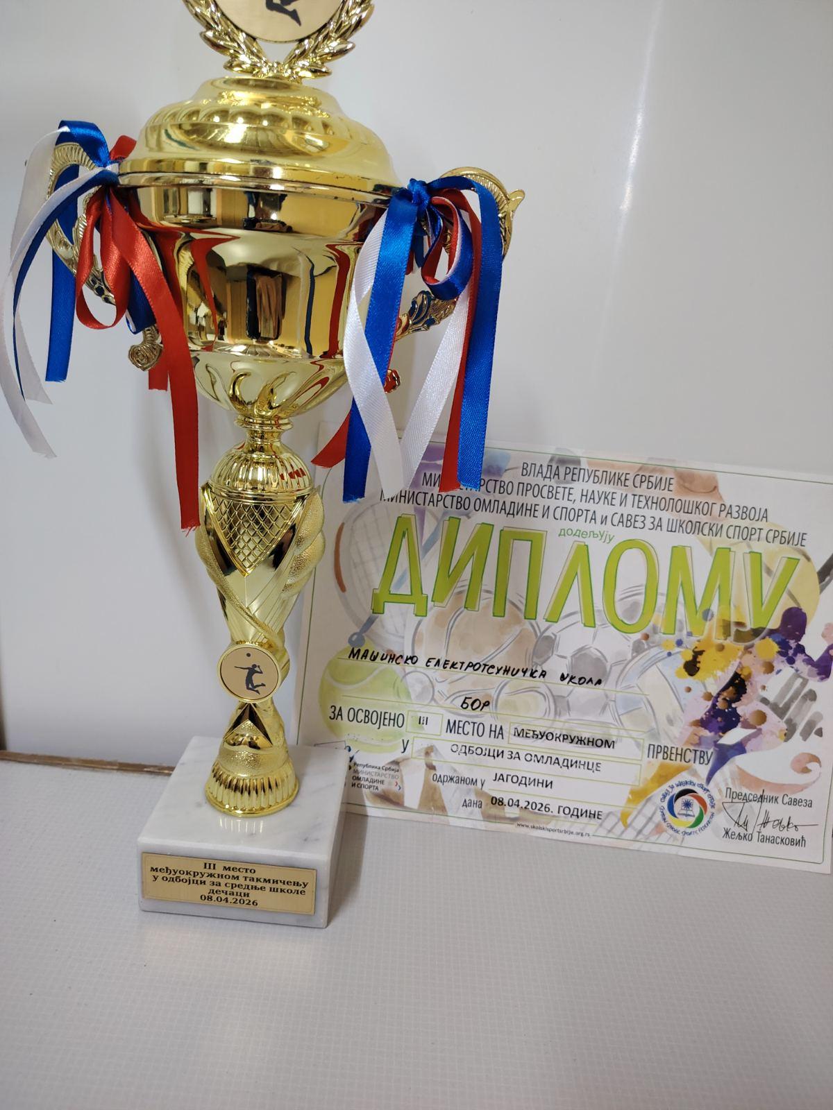 На међуокружном такмичењу у одбојци, одржаном у Јагодини, ученици Машинско-електротехничке школе у Бору остварили су запажен успех освојивши треће место. У конкуренцији јаких и добро припремљених екипа, борски средњошколци показали су велику упорност, тимски дух и спортску зрелост.