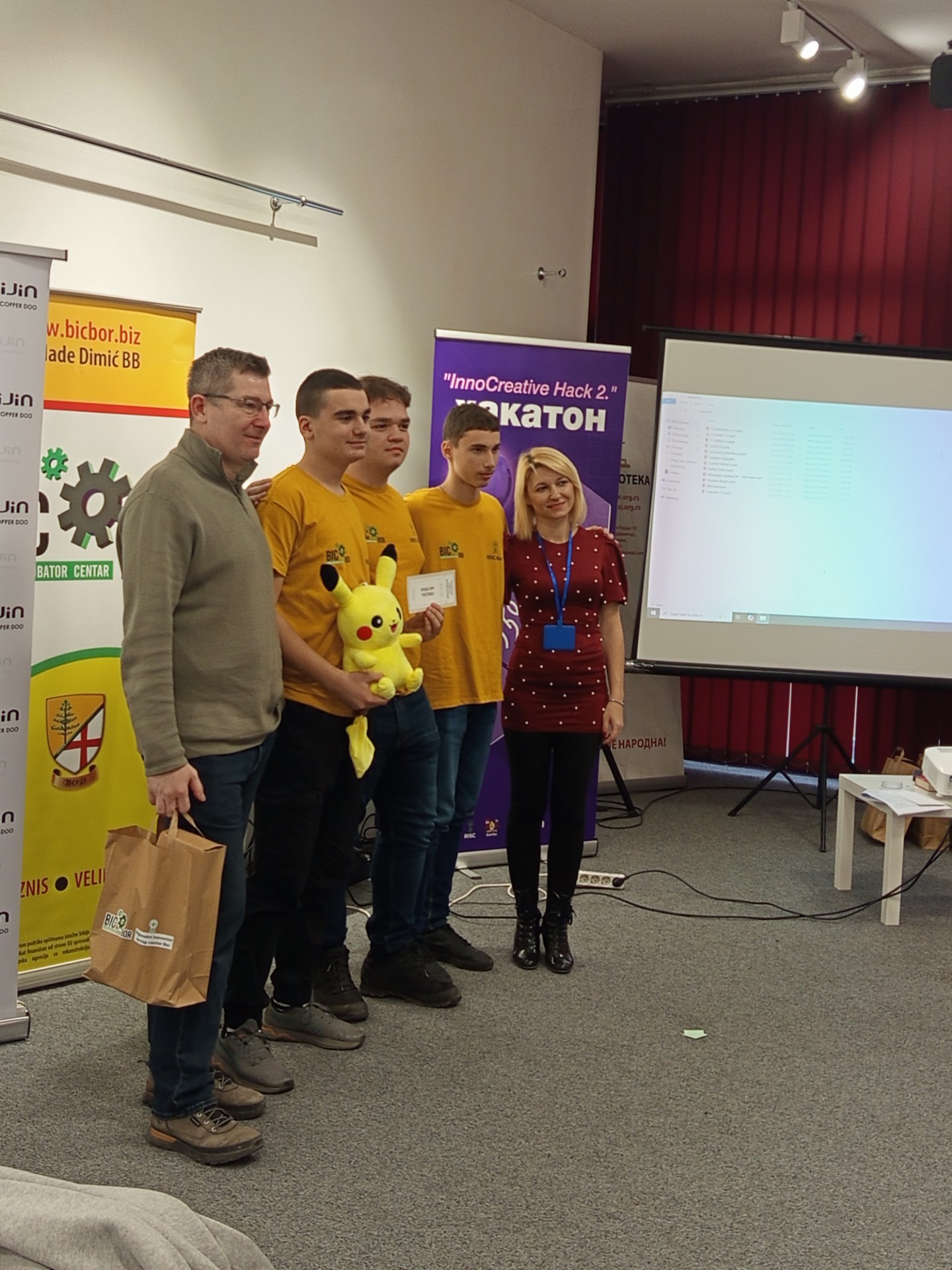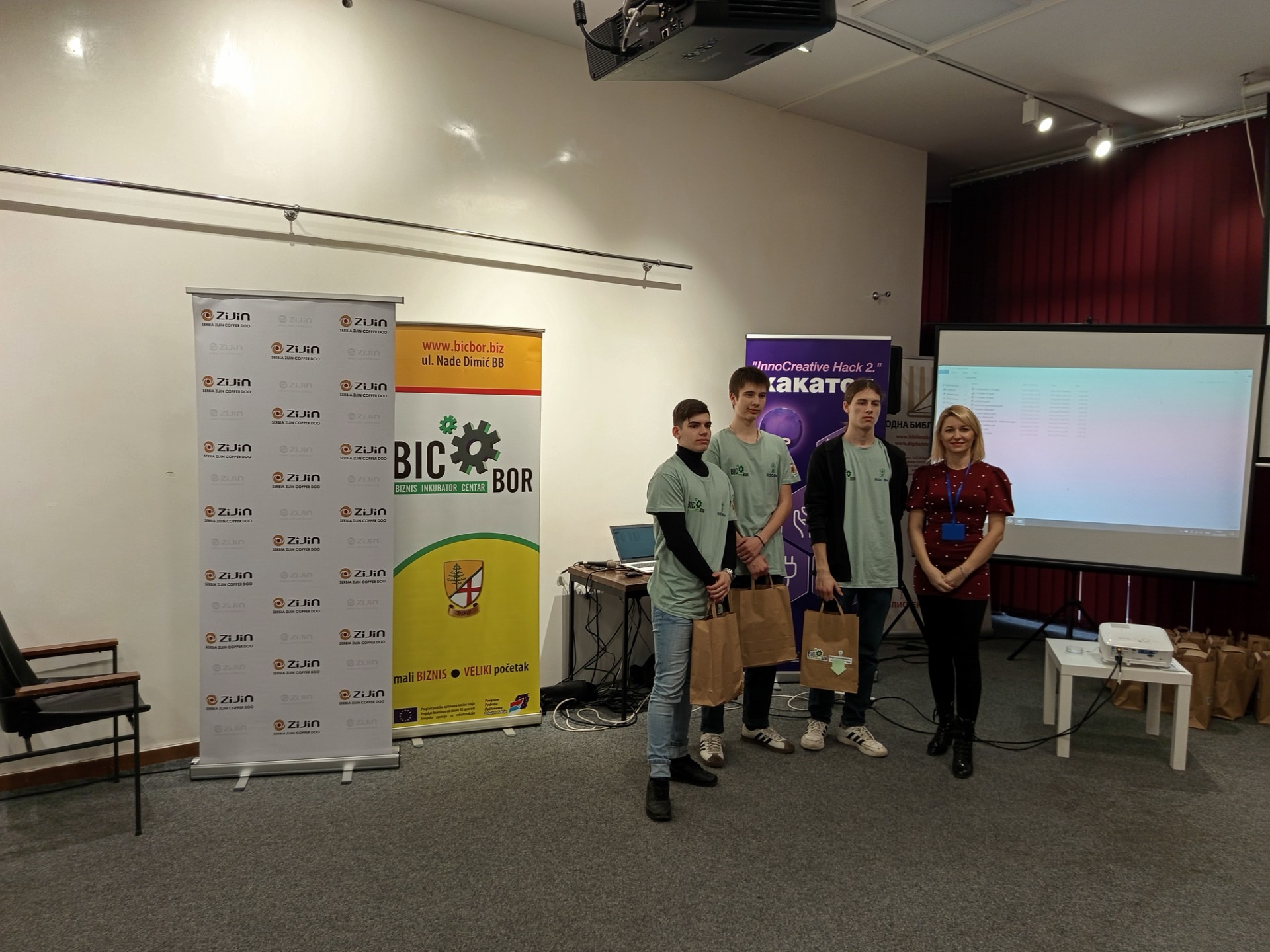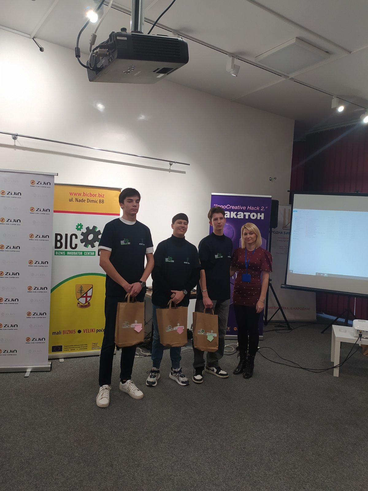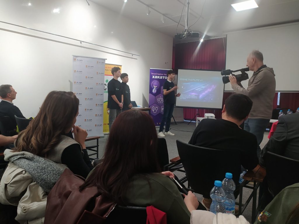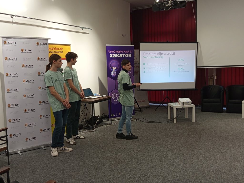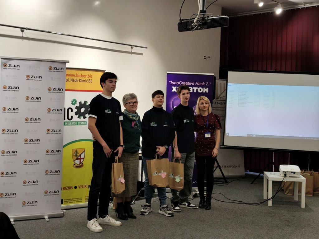 У Народној библиотеци у Бору 23.12.2025. године одржано је такмичење средњошколаца и студената у иновативним идејама “InnoCreative Hack 2” тј. “Хакатон”, у организацији Бизнис инкубатор центра Бор. Борски средњошколци и студенти су пред жиријем презентовали своје иновативне идеје везане за побољшање саобраћаја и комуналне инфраструктуре, заштите животне средине, чистије и ефикасније коришћење енергије, паметни туризам и маркетинг. Ученици наше школе су остварили сјајне резултате и овим путем им честитамо. Прво место освојили су: Коста Пајкић II-2, Лазар Табаковић II-2 и Филип Павловић II-2 под менторством професорице Милунке Вељковић. Треће место освојили су: Павле Милојевић IV-1, Александар Остојић IV-1 и Вељко Штирбановић IV-1 под менторством професорице Наташе Милановић. Поред ових тимова нашу школу су представљали и ученици одељења ученици из I-2: Вања Газић, Андрија Ђорђевић и Владимир Маринковић. Свим ученицима и ментоирима од срца честитамо и захваљујемо се на одличном представљању наше школе.