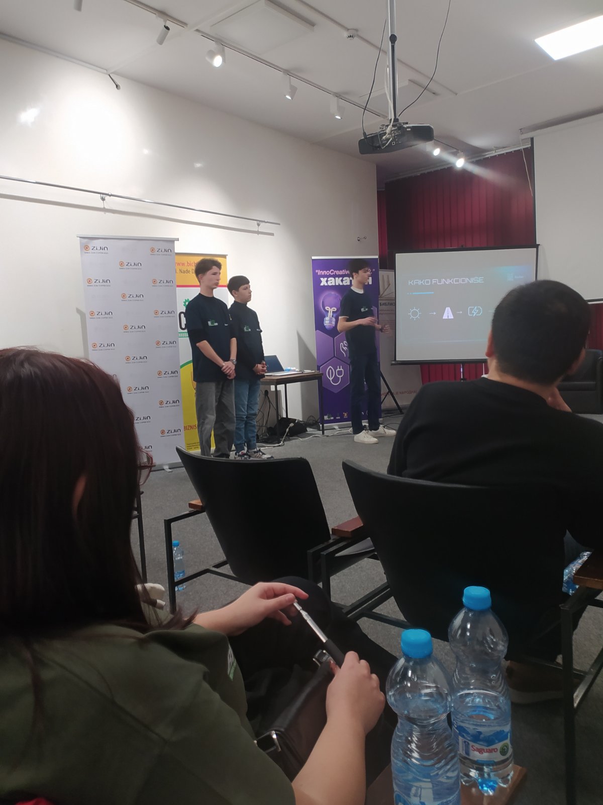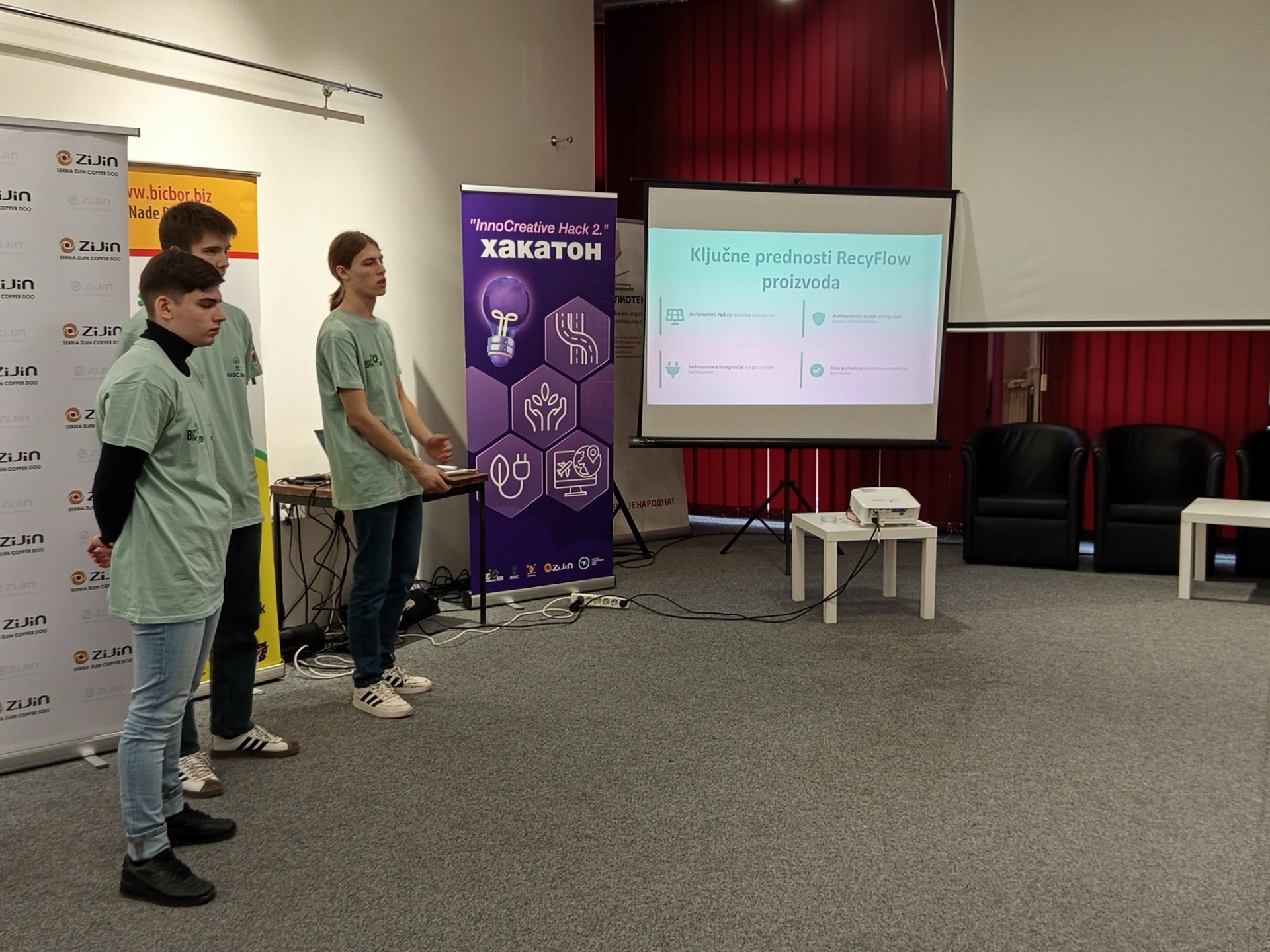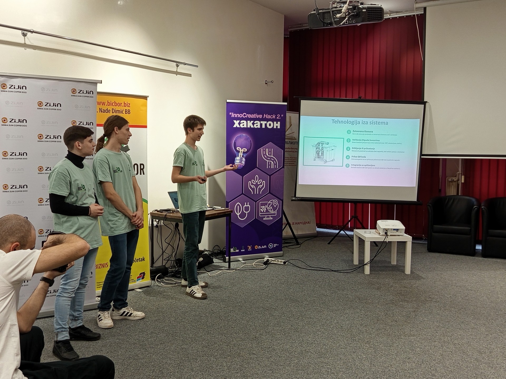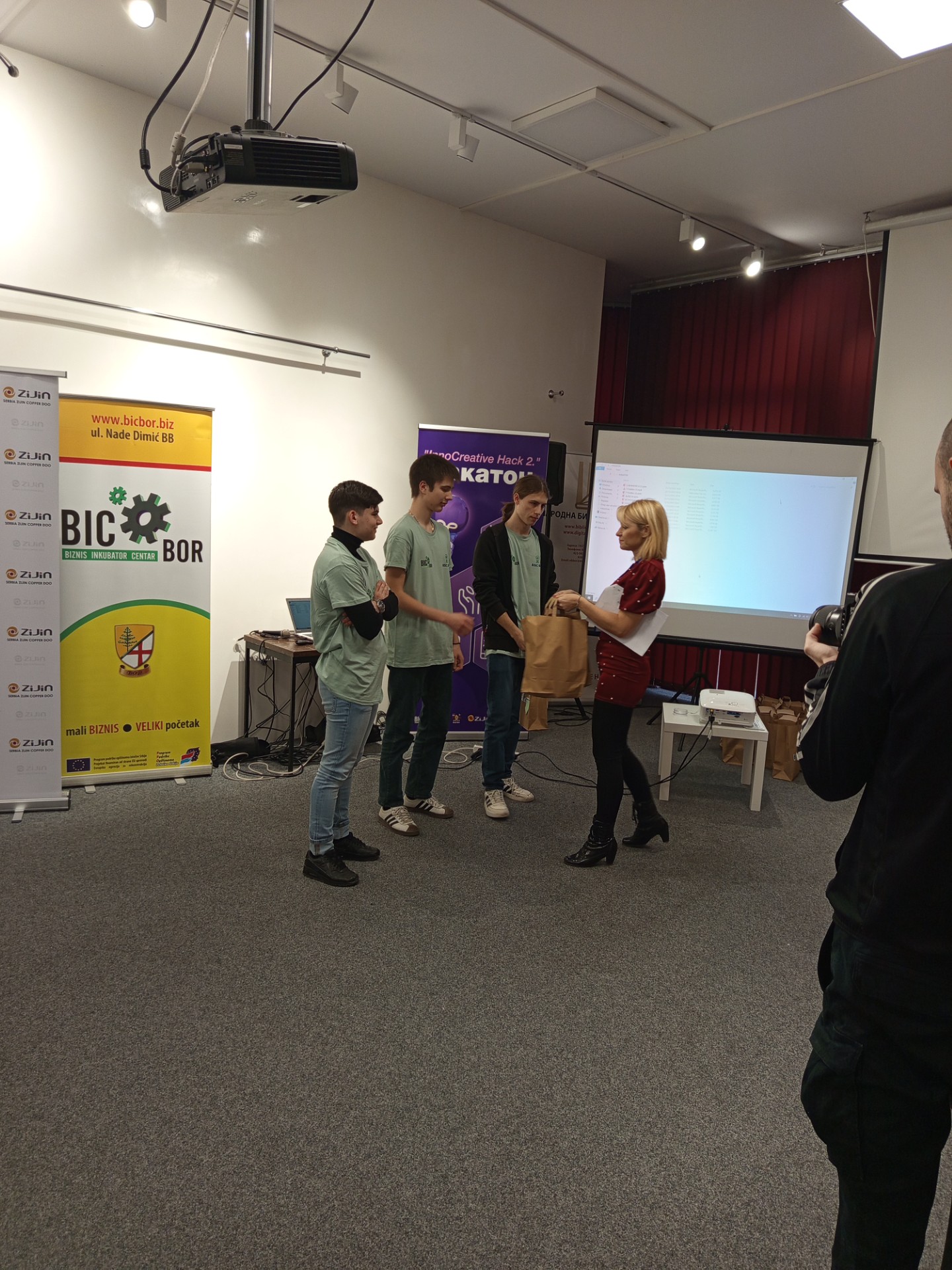 У Народној библиотеци у Бору 23.12.2025. године одржано је такмичење средњошколаца и студената у иновативним идејама “InnoCreative Hack 2” тј. “Хакатон”, у организацији Бизнис инкубатор центра Бор. Борски средњошколци и студенти су пред жиријем презентовали своје иновативне идеје везане за побољшање саобраћаја и комуналне инфраструктуре, заштите животне средине, чистије и ефикасније коришћење енергије, паметни туризам и маркетинг. Ученици наше школе су остварили сјајне резултате и овим путем им честитамо. Прво место освојили су: Коста Пајкић II-2, Лазар Табаковић II-2 и Филип Павловић II-2 под менторством професорице Милунке Вељковић. Треће место освојили су: Павле Милојевић IV-1, Александар Остојић IV-1 и Вељко Штирбановић IV-1 под менторством професорице Наташе Милановић. Поред ових тимова нашу школу су представљали и ученици одељења ученици из I-2: Вања Газић, Андрија Ђорђевић и Владимир Маринковић. Свим ученицима и ментоирима од срца честитамо и захваљујемо се на одличном представљању наше школе.